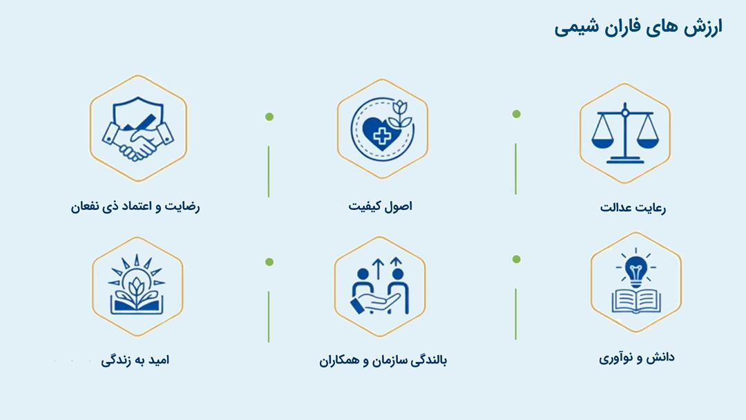 ارزش‌های سازمانی داروسازی فاران شیمی با رویکردی مبتنی بر واقعیت‌های عملیاتی، فرهنگ سازمانی و الزامات صنعت دارو تدوین شده‌اند و قرار است به‌عنوان مبنای تصمیم‌گیری، تعاملات درون‌سازمانی و همکاری با ذی‌نفعان مورد استفاده قرار گیرند.